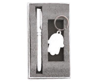 porte-clés et un stylo à bille.
