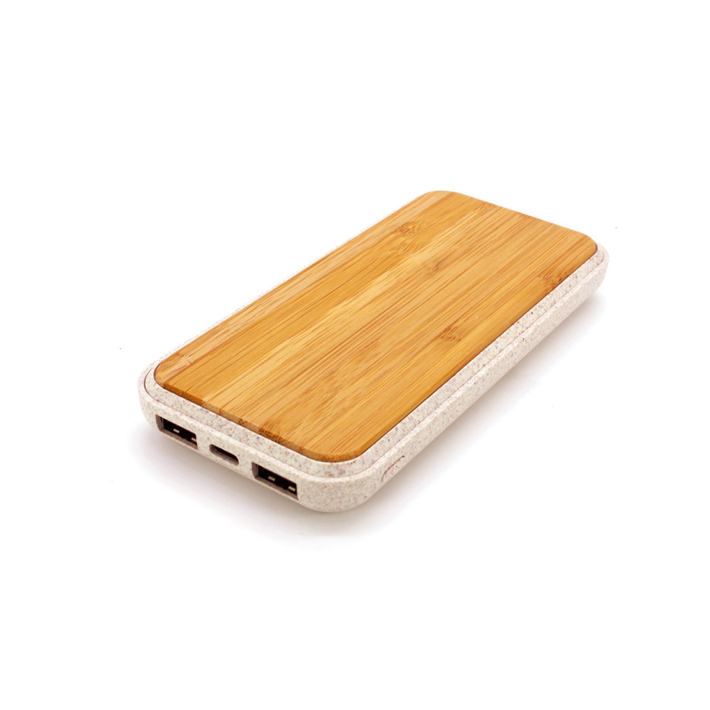 Fabriqué à partir de bambou et de fibres de blé, ce chargeur portable reflète un engagement écologique tout en intégrant la technologie de charge sans fil (induction).