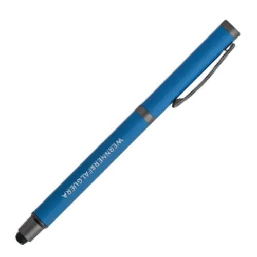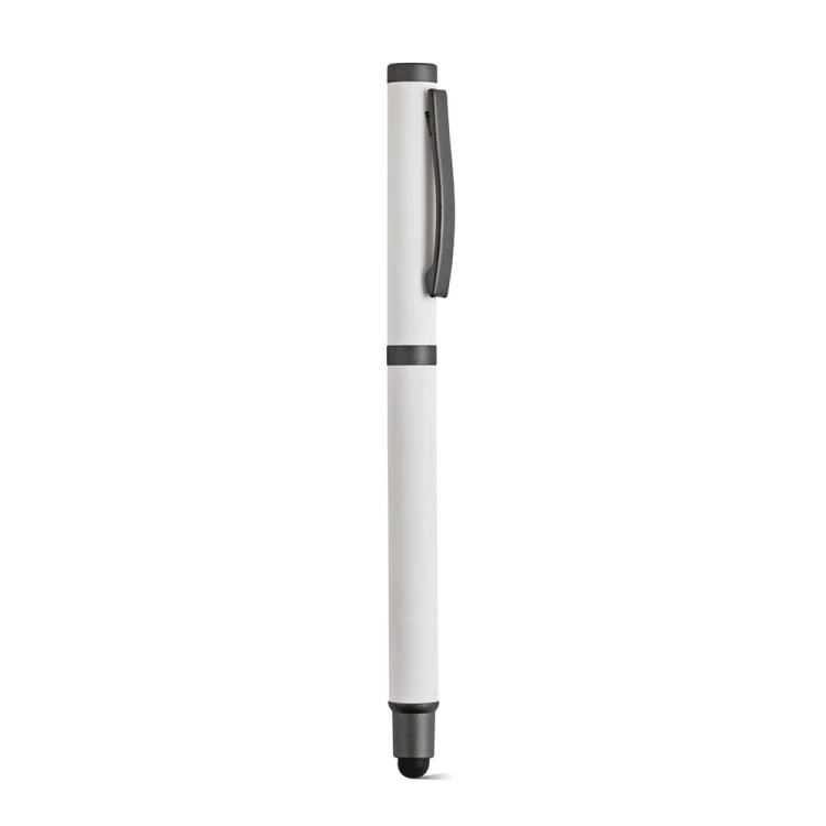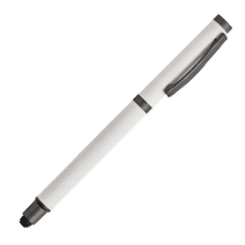 Ce stylo publicitaire 2 en 1 combine une écriture fluide et confortable avec une pointe stylet tactile compatible avec tous les écrans (smartphones, tablettes, etc.).