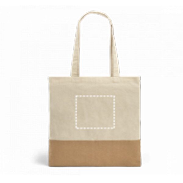 Sac 100% coton personnalisé Logo (160 g/m²) avec détalhe en imitation jute et poignées de 65 cm. 375 x 415 mm
