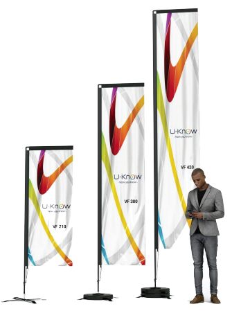 Beach flag en H ou rectangulaire. Les mâts se fixent sur tous les pieds de la même manière.