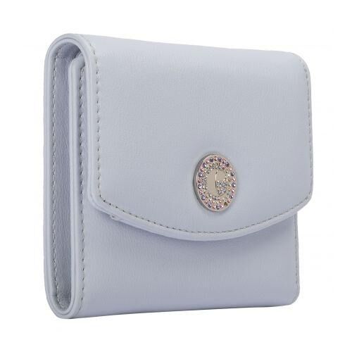 Un portefeuille pour femme spacieux et très compact fabriqué dans des matériaux de haute qualité avec un fermoir décoratif estampé du logo Cacharel. Disponible en couleurs bleu, blanc et bleu marine.